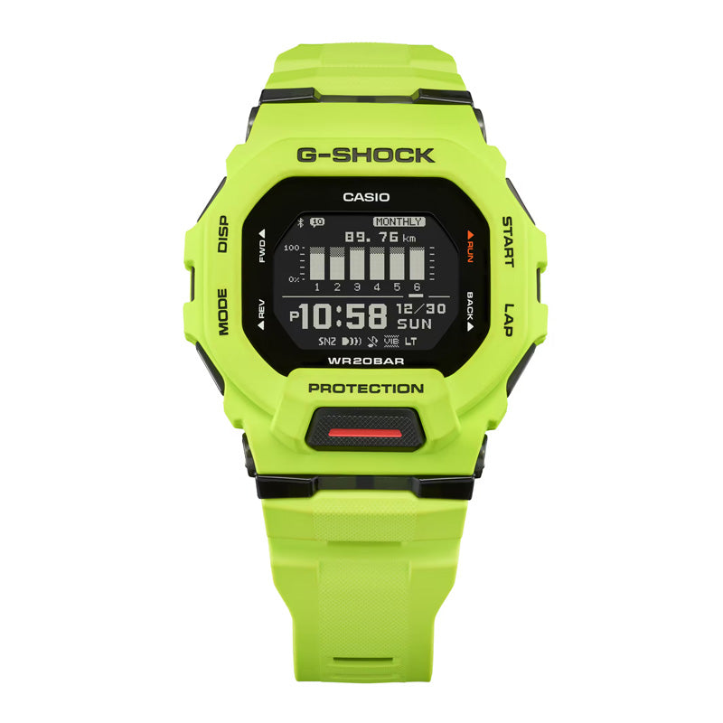 Visualización diaria de datos de Life Log (conteo de pasos), visualización mensual de datos (distancia de carrera) Datos del entrenamiento (hasta 100 carreras, hasta 140 tiempos de vuelta por carrera) Tiempo transcurrido, distancia, ritmo, calorías quemadas