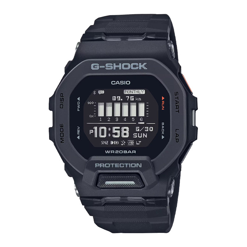 Visualización diaria de datos de Life Log (conteo de pasos), visualización mensual de datos (distancia de carrera) Datos del entrenamiento (hasta 100 carreras, hasta 140 tiempos de vuelta por carrera) Tiempo transcurrido, distancia, ritmo, calorías quemadas