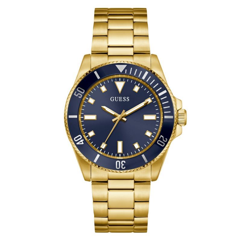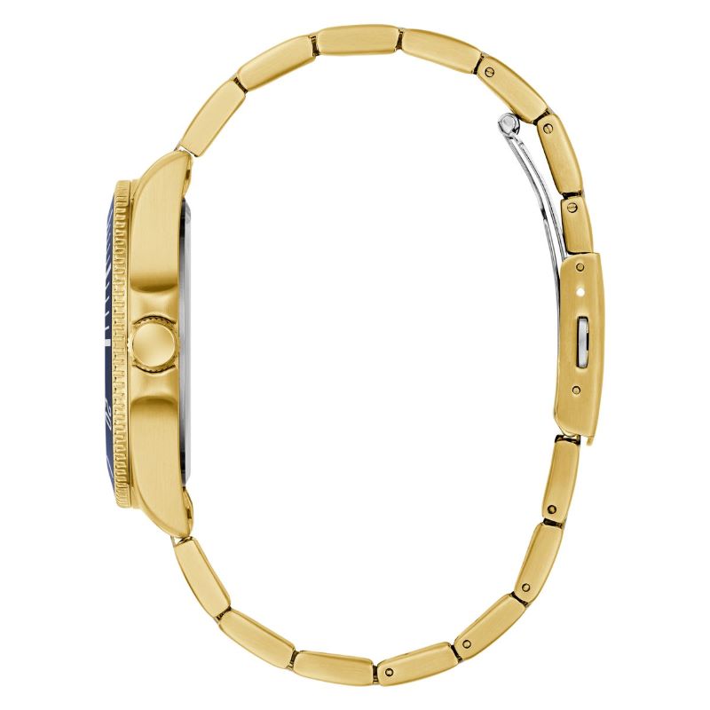 Este dinámico reloj deportivo presenta innovadores detalles de aluminio y un diseño contemporáneo audaz, con una caja redonda de 41 mm en acero reciclado cepillado y pulido en tono dorado, con un distintivo anillo superior de aluminio en azul índigo puro combinado con un brazalete de acero inoxidable en tono dorado. La esfera azul índigo puro con efecto rayos de sol proporciona un vibrante contraste de color, mientras que el detalle de aluminio añade un toque de sofisticación. Con una resistencia al agua de 50 metros, este llamativo reloj es perfecto para el hombre que quiere marcar la diferencia con materiales innovadores y combinaciones de colores audaces.