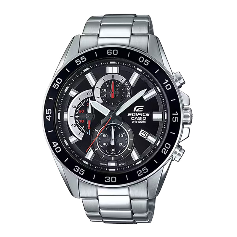 Un cronógrafo EDIFICE estándar de tamaño grande. El uso de un dial de inserción extragrueso crea un diseño dinámico potente.
