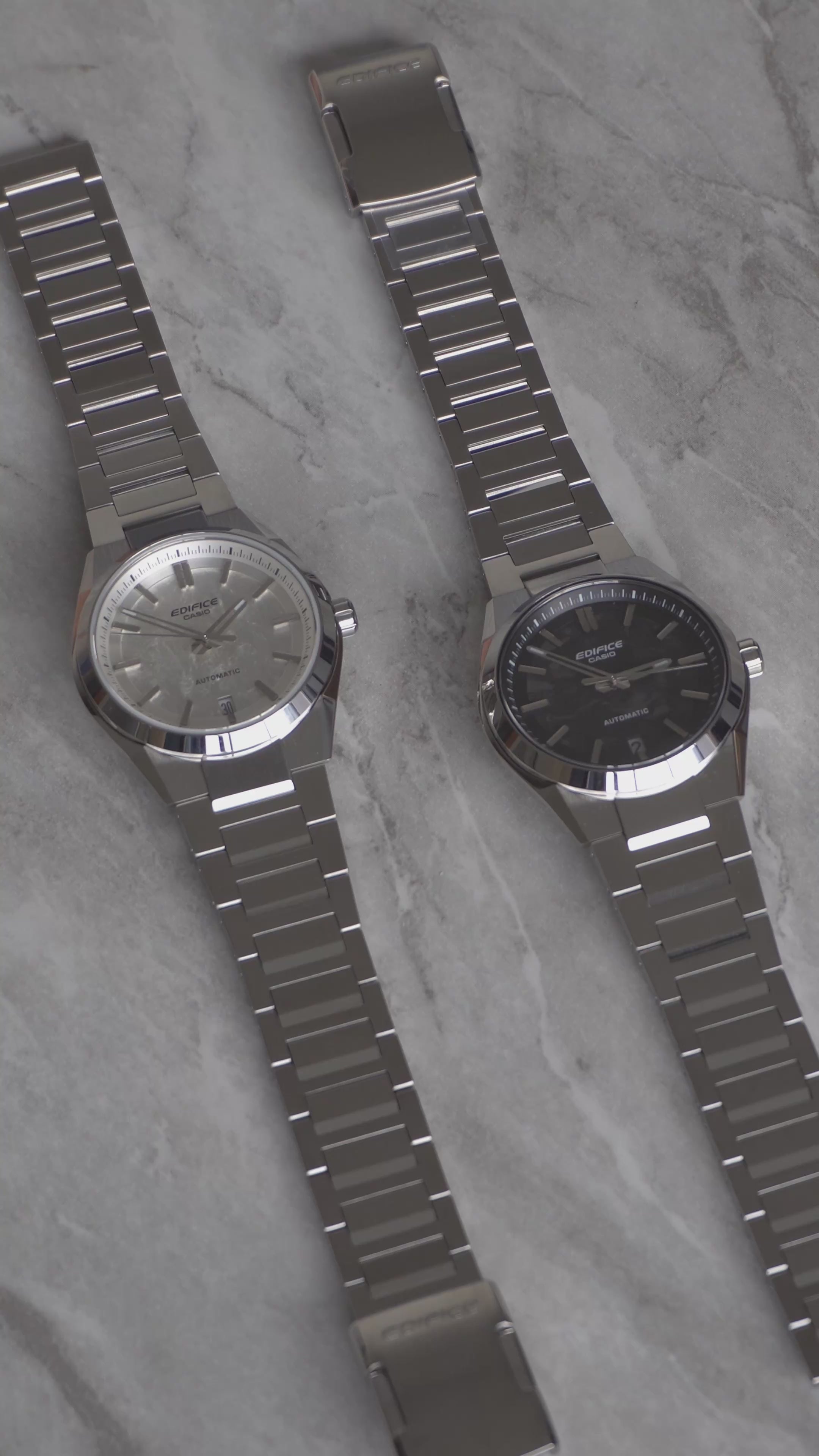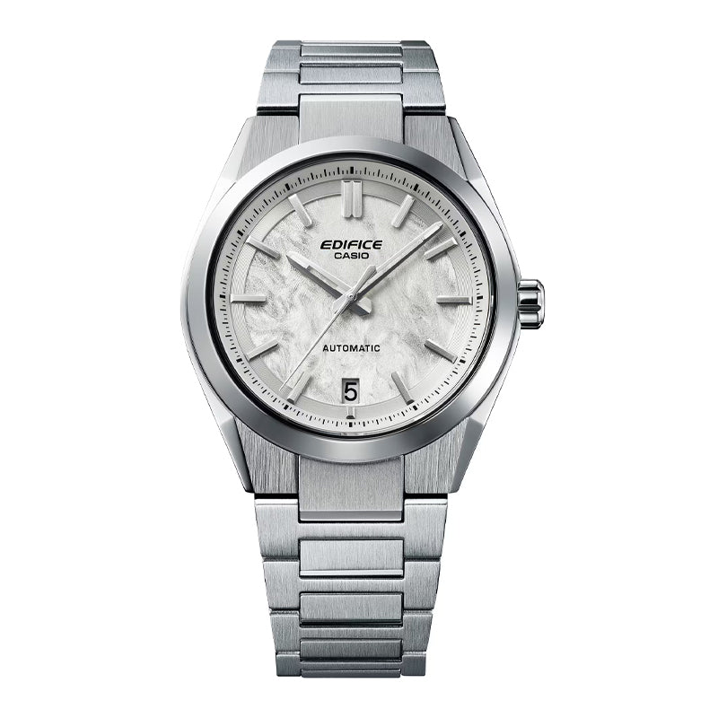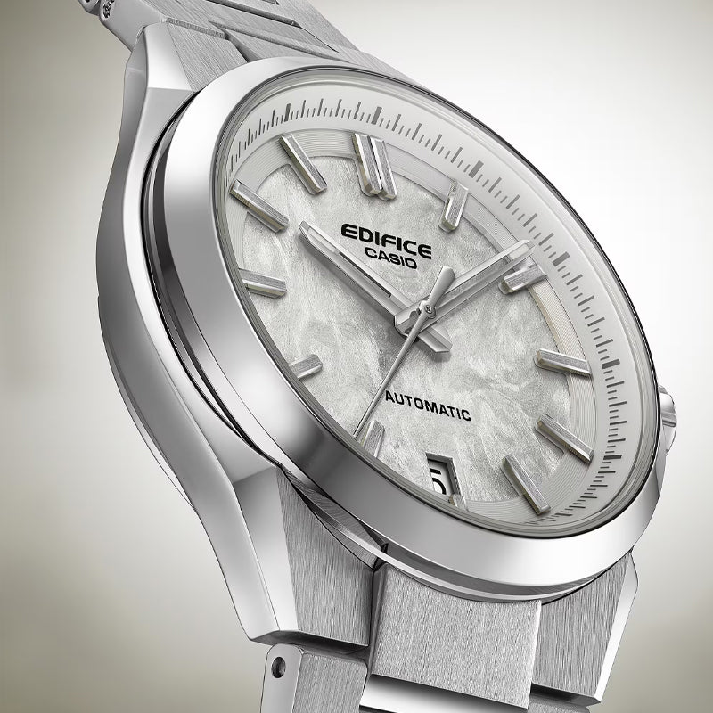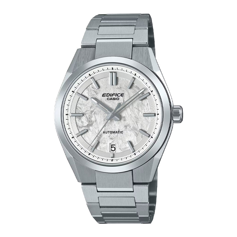 Diseñado para auténticos entusiastas de los deportivos: el EFK-100D es un reloj analógico de tres agujas que encarna el espíritu de EDIFICE, donde la ingeniería relojera se une al mundo de los automóviles de alto rendimiento. La técnica de electroforming reproduce en la esfera el aspecto del carbono forjado, creando una textura única que combina deportividad y sofisticación. El cristal de zafiro mejora la visibilidad, mientras que detalles dinámicos como los índices en relieve y el diseño afilado de la caja y el bisel completan una estética refinada y potente. El movimiento automático, con una reserva de marcha de 40 horas, impulsa las agujas con la precisión de un motor deportivo, todo dentro de una caja compacta de 39 mm. El fondo transparente permite contemplar el mecanismo en acción, resaltando el encanto único de la relojería mecánica. La resistencia al agua hasta 10 bares te permite centrarte en lo que realmente importa: disfrutar al máximo.