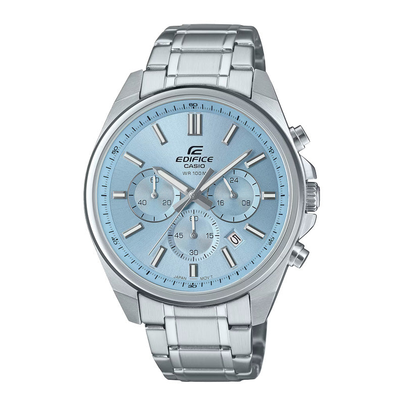 Un cronógrafo EDIFICE clásico de tamaño mediano para lograr un balance adecuado. La sofisticada combinación de detalles y diseño presenta un delgado bisel compensado por un amplio dial para ofrecer un estilo elegante y sorprendente.