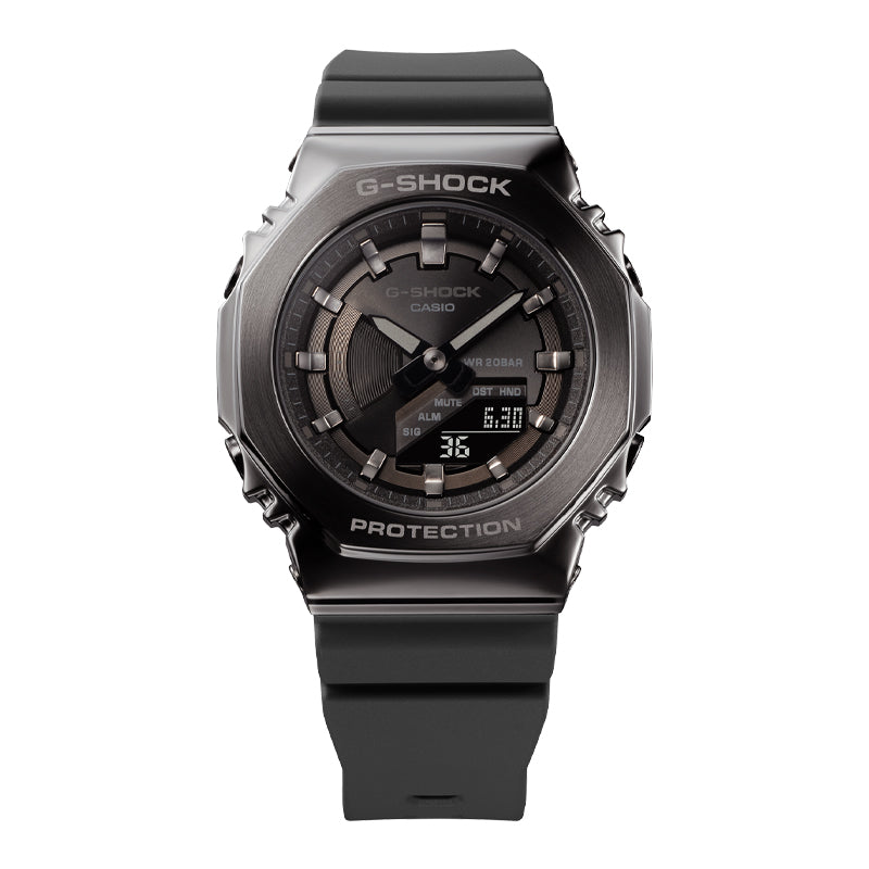 Fuerte, firme, con estilo: Apueste al revestimiento metálico, ahora en tonos radiantes de colores elegantes. El GM-S2110 octogonal adopta tres nuevos esquemas de color: rosa dorado y negro, rosa dorado y rosa beige, y gris oscuro. Los elementos metálicos de la esfera aportan brillo y textura, mientras que su tamaño compacto garantiza un ajuste cómodo para muñecas más delgadas. El diseño sofisticado y minimalista complementa a la perfección cualquier vestimenta, desde moda elegante hasta ropa casual.