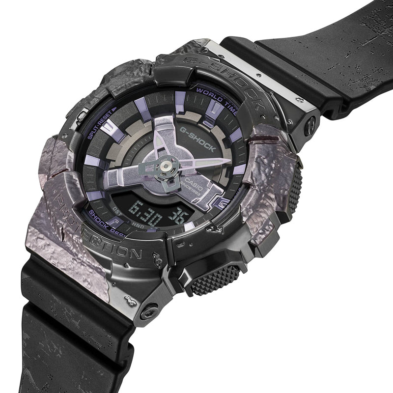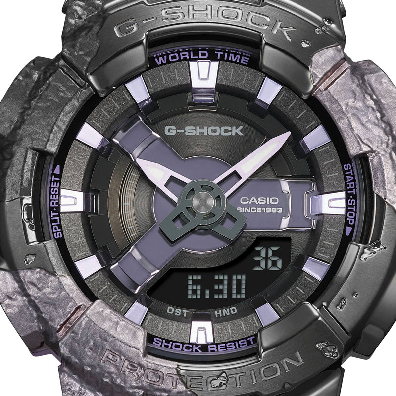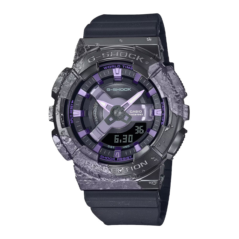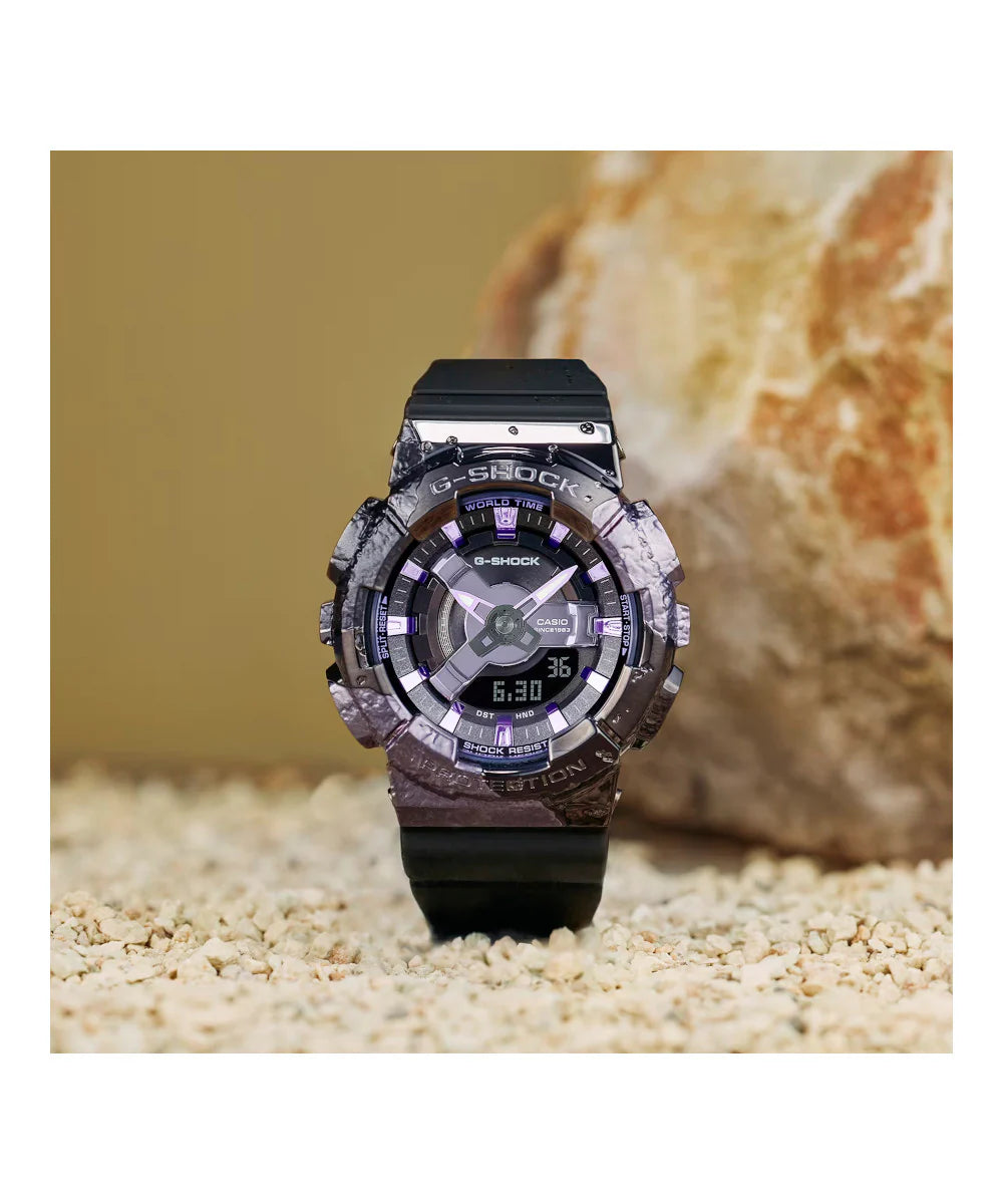 Trace su propio rumbo con un reloj G-SHOCK de edición limitada del 40.º aniversario de Adventurer's Stone. Únase a nosotros para celebrar el 40.º aniversario del G-SHOCK eligiendo uno de estos espectaculares relojes con diseño metálico, inspirados por las piedras que los aventureros han usado para navegar desde la antigüedad. Los colores especiales de los minerales que los antiguos marinos utilizaban para encontrar su rumbo se reproducen en estos diseños de reloj con procesos de forjado, baño de iones y enmascarado, lo que otorga a cada marco metálico un aspecto único. Las correas están fabricadas con resina coloreada o translúcida y tienen una textura única con técnicas de estampado en caliente y moldeado en color de Garal. Estos relojes de edición limitada honran el 40.º aniversario del G-SHOCK de principio a fin: la frase “SINCE 1983” (Desde 1983) aparece en el dial; el logotipo del 40.º aniversario diseñado por Eric Haze está grabado en la parte posterior de la carcasa y hay cuatro estrellas por el 40.º aniversario en el sujetador de la correa.